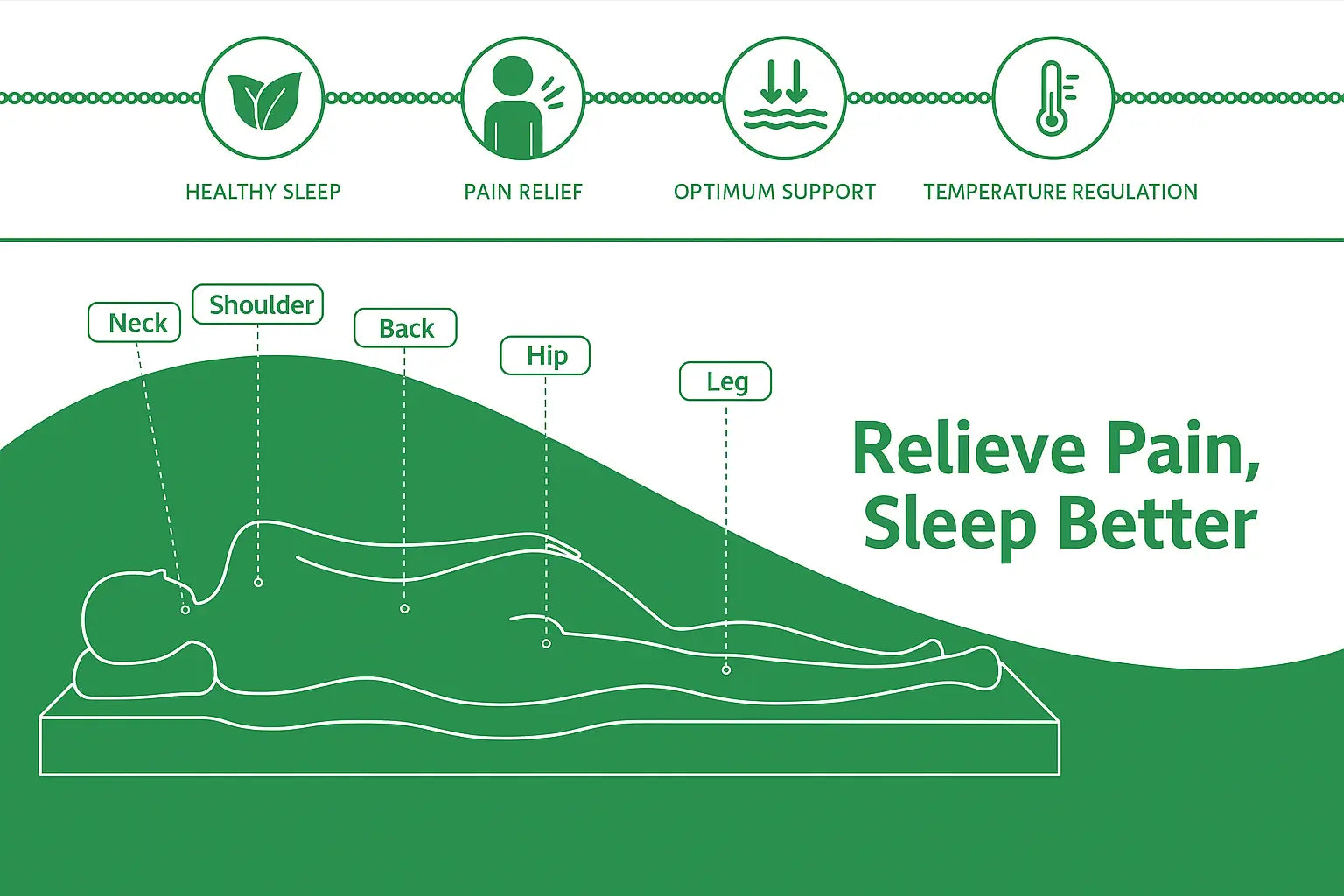 Reduces pressure points and aches: Provides optimal support and comfort, alleviating discomfort in key areas like hips, shoulders, and back.