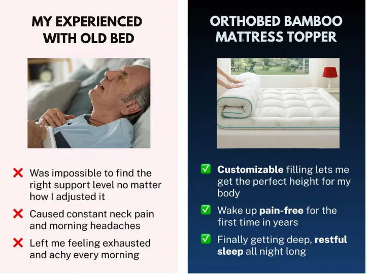 "The OrthoBed topper is like sleeping on a cloud. It's so comfortable and supportive, I fall asleep faster and stay asleep longer."